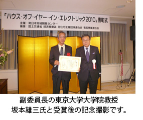 「我が社が全力で取り組んでおります省エネ住宅が、今回の「ハウス・オブ・ザ・イヤー・イン・エレクトリック2010」でも高く評価されたことは大変喜ばしい事であり、またとても光栄に思います。