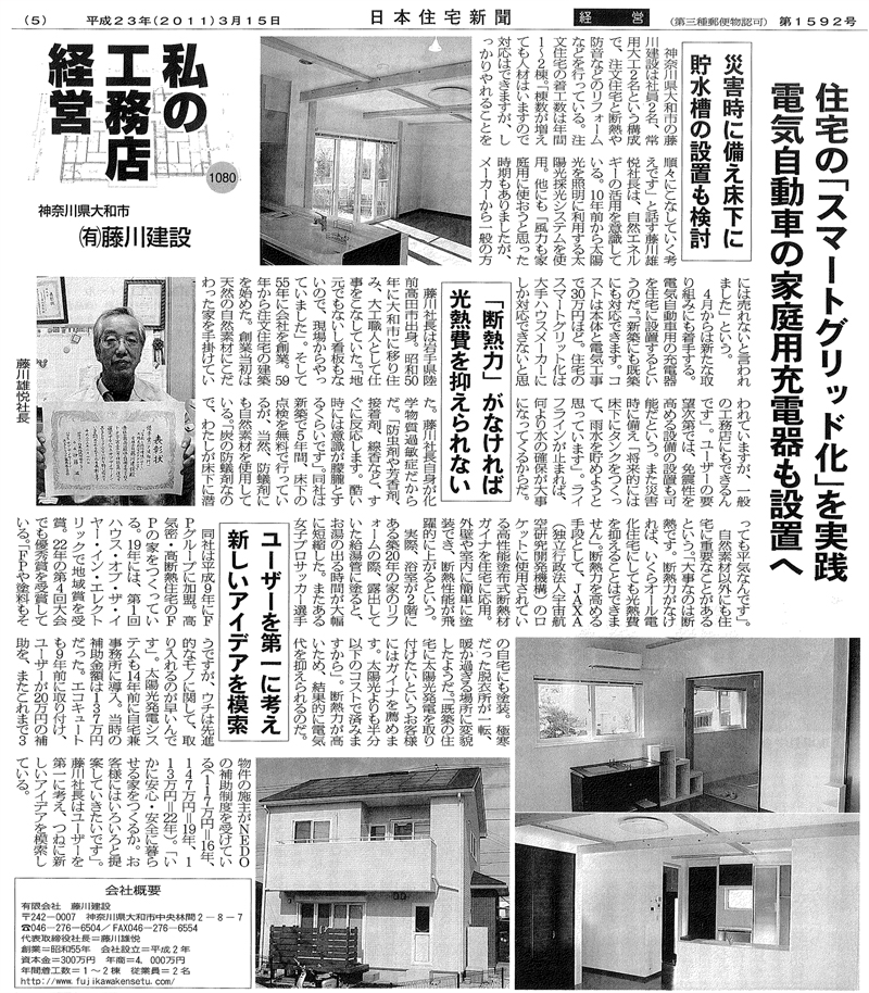 日本住宅新聞(2011年3月15日)に弊社が紹介されました。