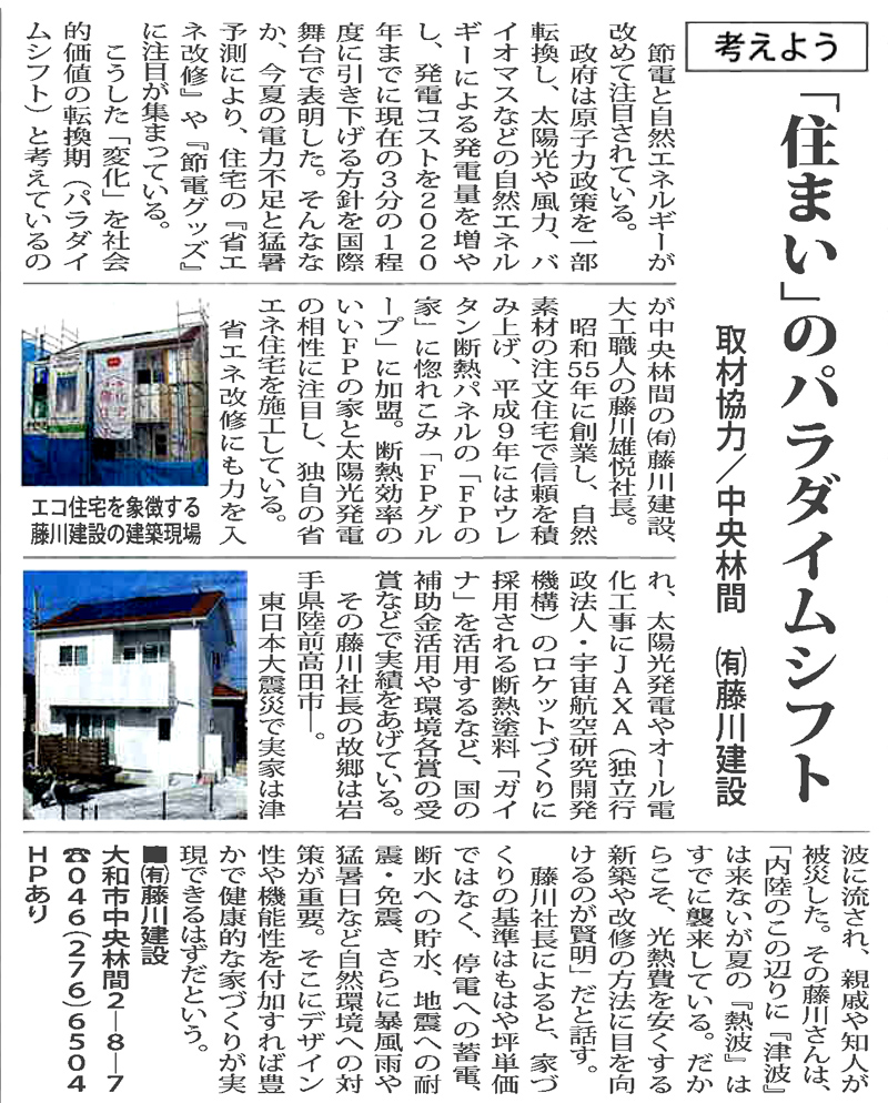 ゼロエネルギー100年住宅の21世紀へ!「FPの家」は住まいの価値を考えます。有限会社藤川建設