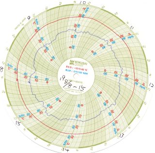 円グラフの赤い線は、温度を表します