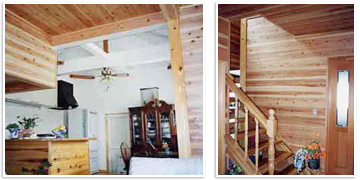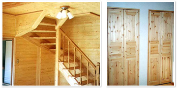 ■天井と壁にパイン板貼りを施した洋室と北欧パインの内装ドア